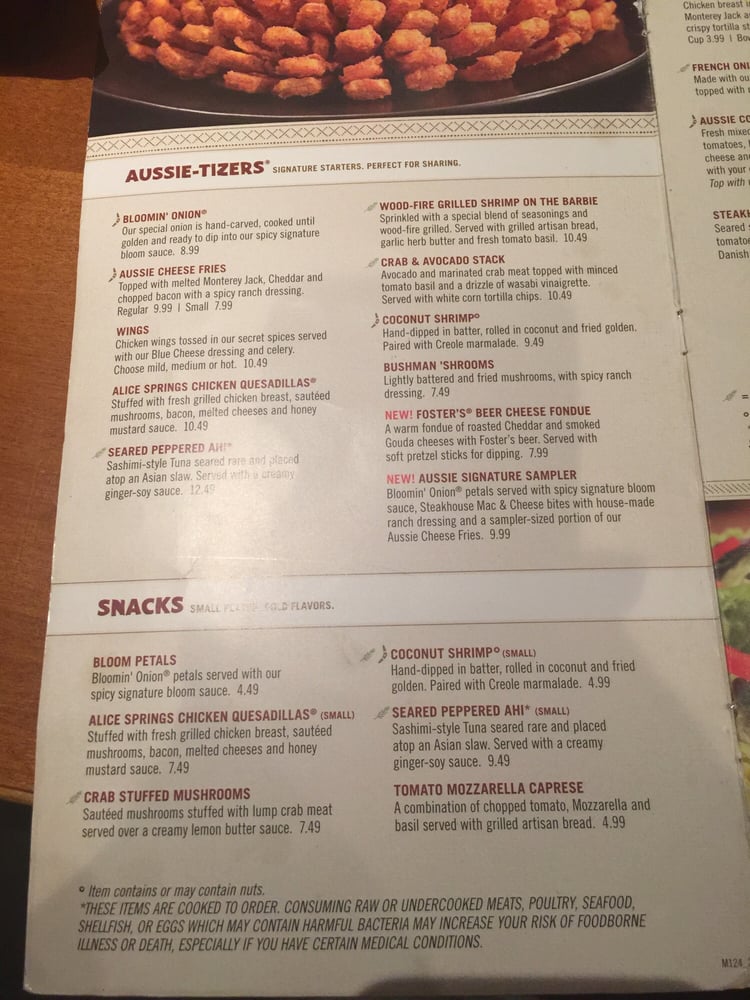 Outback Steakhouse - 13010 Middlebelt Rd Menu